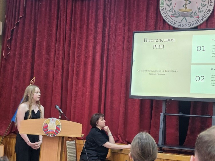 На мастер-классе были представлены 2 учебно-исследовательские работы: Борисюк Анны, 201 ЛМ, «Искусственный интеллект как цифровое зрение: новые горизонты образования для лиц с ОПФР (нарушения зрения)»(руководитель Волынец Е.А.) и Нагорной Елизаветы, 11 ЛД, «Оценка риска развития расстройств пищевого поведения у подростков и определение тактики их профилактики»(руководитель Купрейчик В.В.). Данные работы будут участвовать в III республиканской научно-практической конференции с международным участием «Современная медицина и фармация: традиции, инновации, перспективы», посвященной памяти И.П.Антонова, проводимой Витебским государственным медицинским колледжем им. И.П.Антонова». Учащиеся показали отличные навыки презентации и защиты своей работы, способность строить монологическое и диалогическое высказывание по теме.