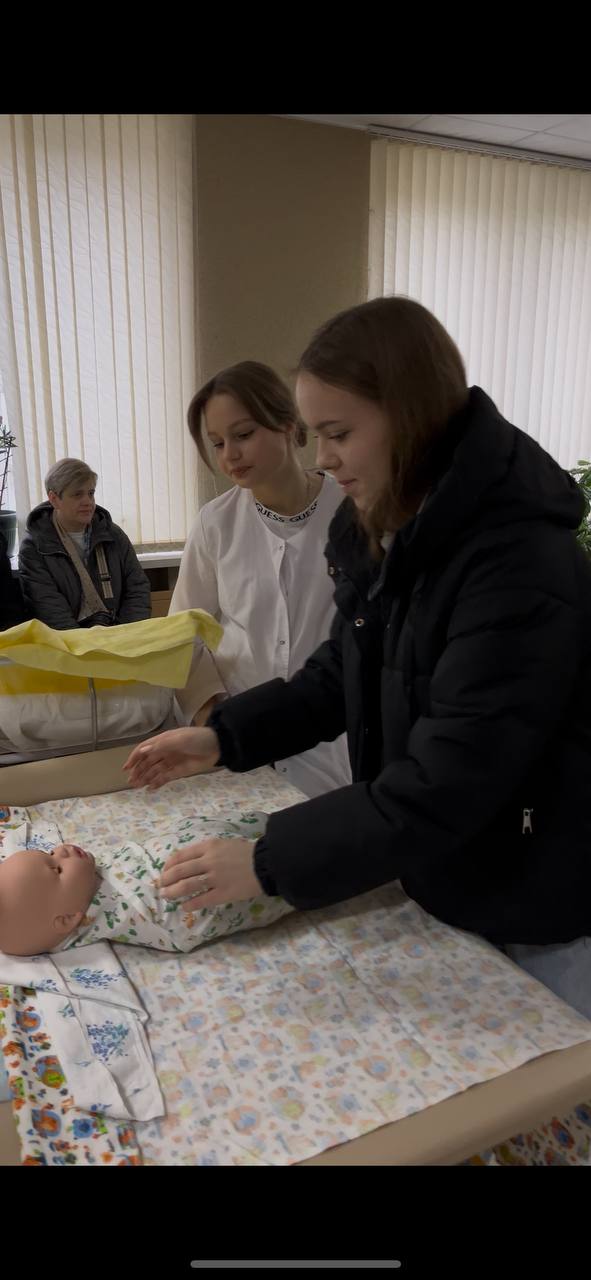 «Сестринское дело»: Здесь можно было не просто посмотреть, а самому запеленать куклу-манекен с точностью профессионала и почувствовать ответственность, делая «укол» на специальном тренажере.