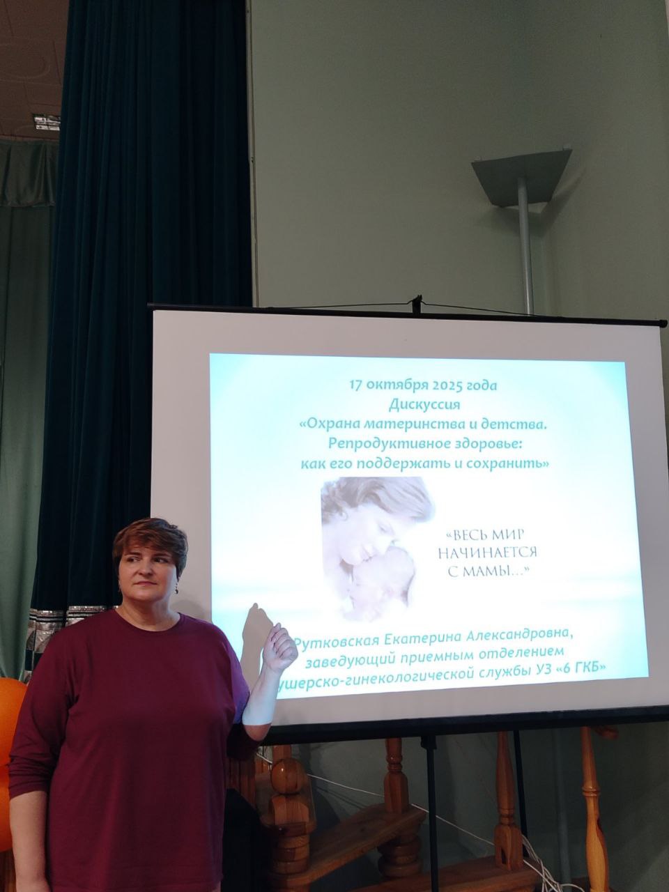 Дискуссию с учащимися колледжа провела Рутковская Екатерина Александровна заведующая приемным отделением акушерство-гинекологической службы УЗ "6-я ГКБ".