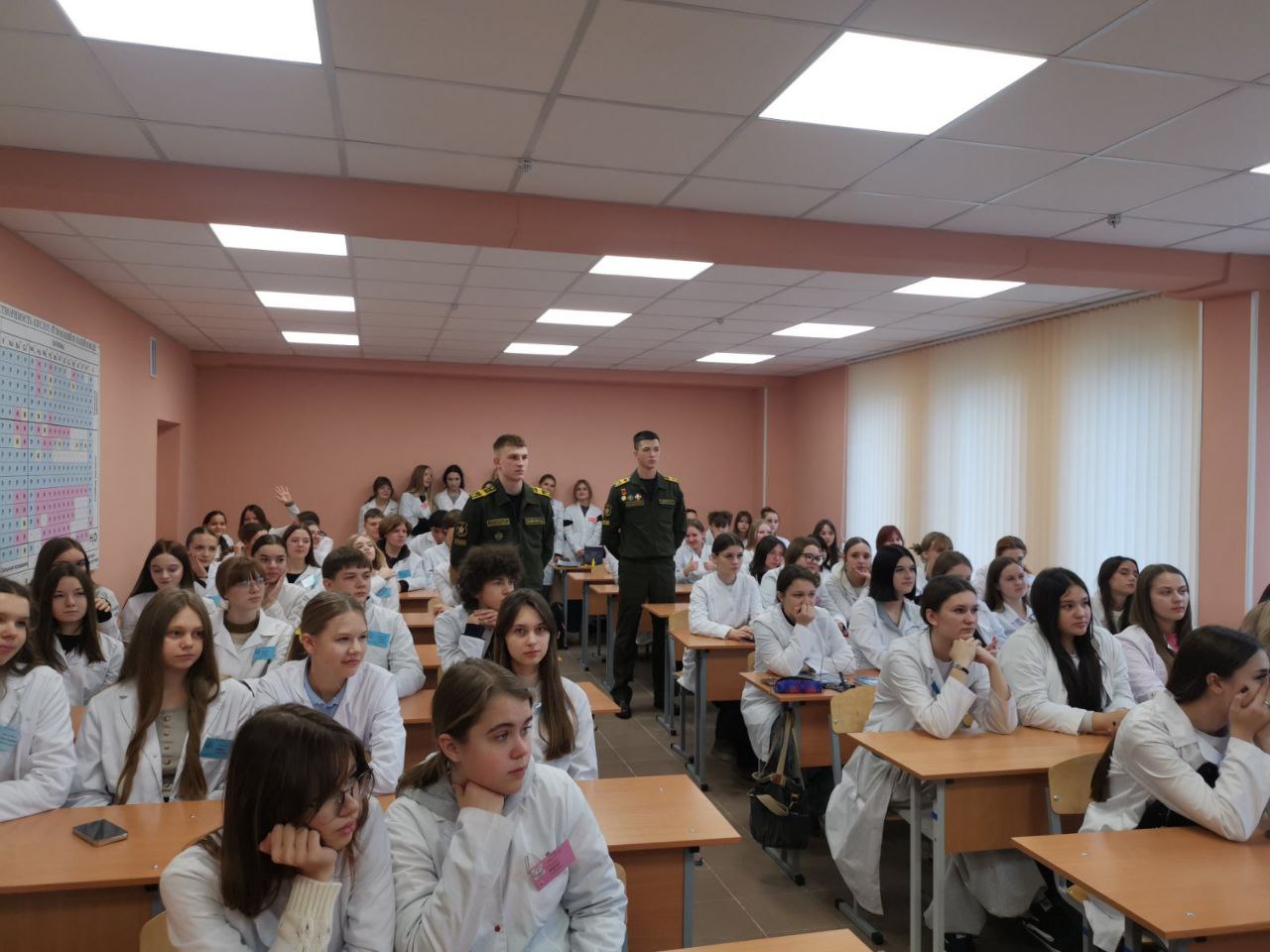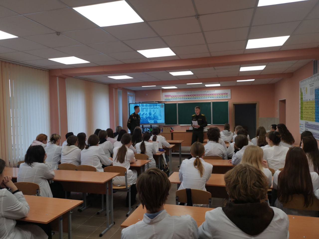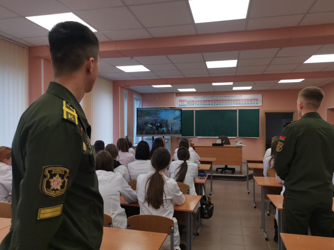 13 ноября с информационным сообщением перед учащимися УО «Минский государственный медицинский колледж» выступили курсанты факультета ракетных войск и артиллерии УО «Военная академия Республики Беларусь»
