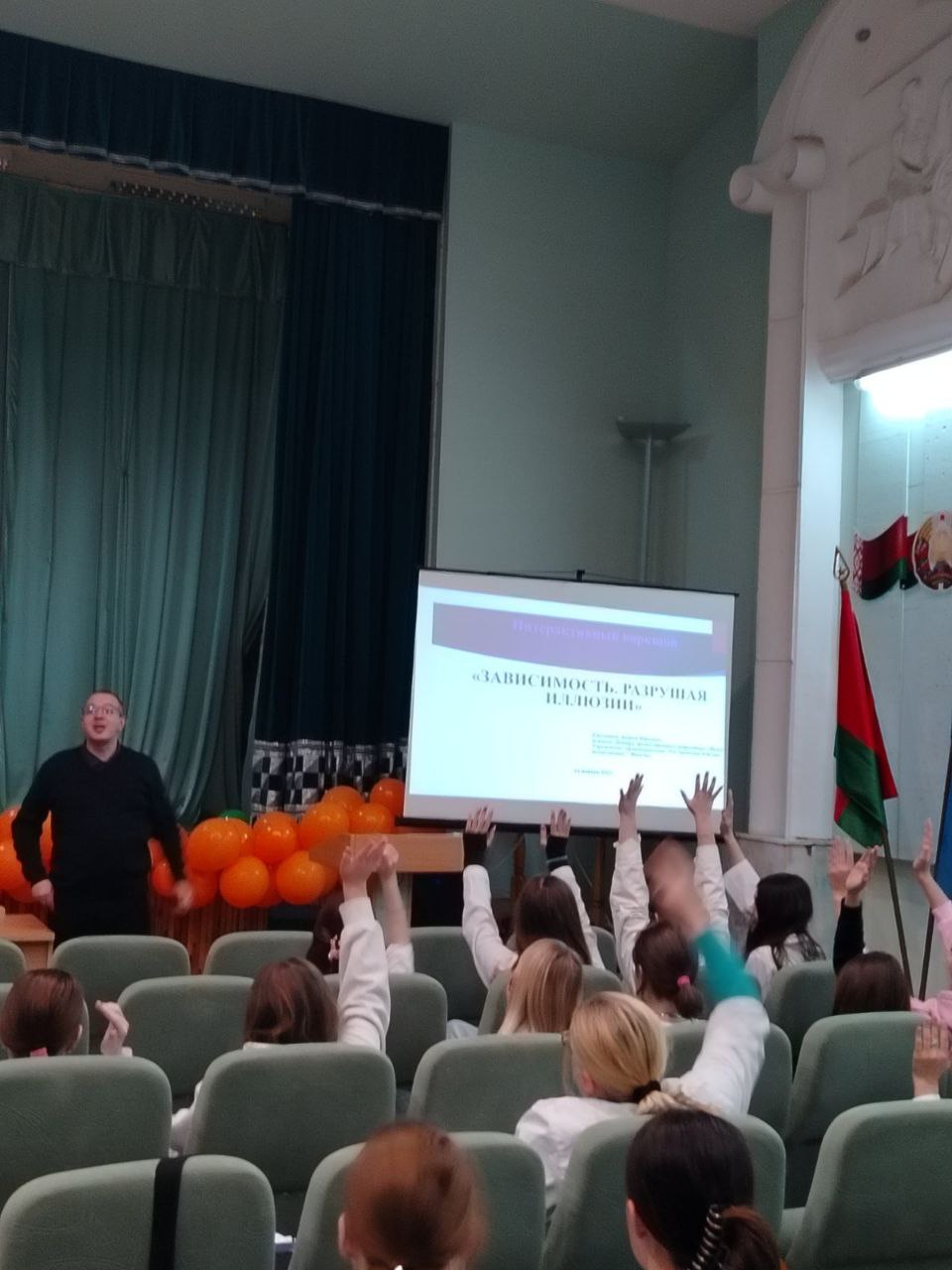 Емельянов Андрей Юрьевич, психолог Центра дружественного подросткам «Визави» учреждения здравоохранения «9-я городская детская поликлиника г. Минска», в доступной игровой форме рассказал об основных видах зависимостей подростков, предрасполагающих факторах развития зависимостей и о неоходимости разрушать иллюзии, которые не позволяют подростку осознать проблему и направить усилия на её преодоление.