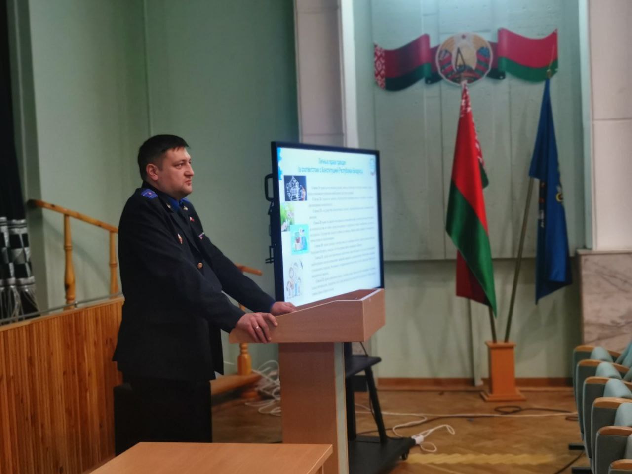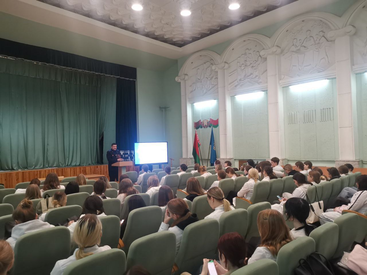27 ноября с учащимися УО «Минский государственный медицинский колледж» проведен информационно-образовательный проект «ШАГ» по теме: «Быть достойным гражданином Республики Беларусь – значит грамотно пользоваться своими правами, честно и добросовестно исполнять свои обязанности», с участием старшего следователя Партизанского районного отдела следственного комитета по г.Минску Андреем Алексеевич Малашенко. Андрей Алексеевич в ходе проведения ШАГ отметил, что государство гарантирует права и свободы граждан Беларуси, закрепленный в Конституции , законах и предусмотренные международными обязательствами государства. ШАГ прошёл в виде брифинга. Присутствующие в зале смогли задать вопросы приглашенному гостю.