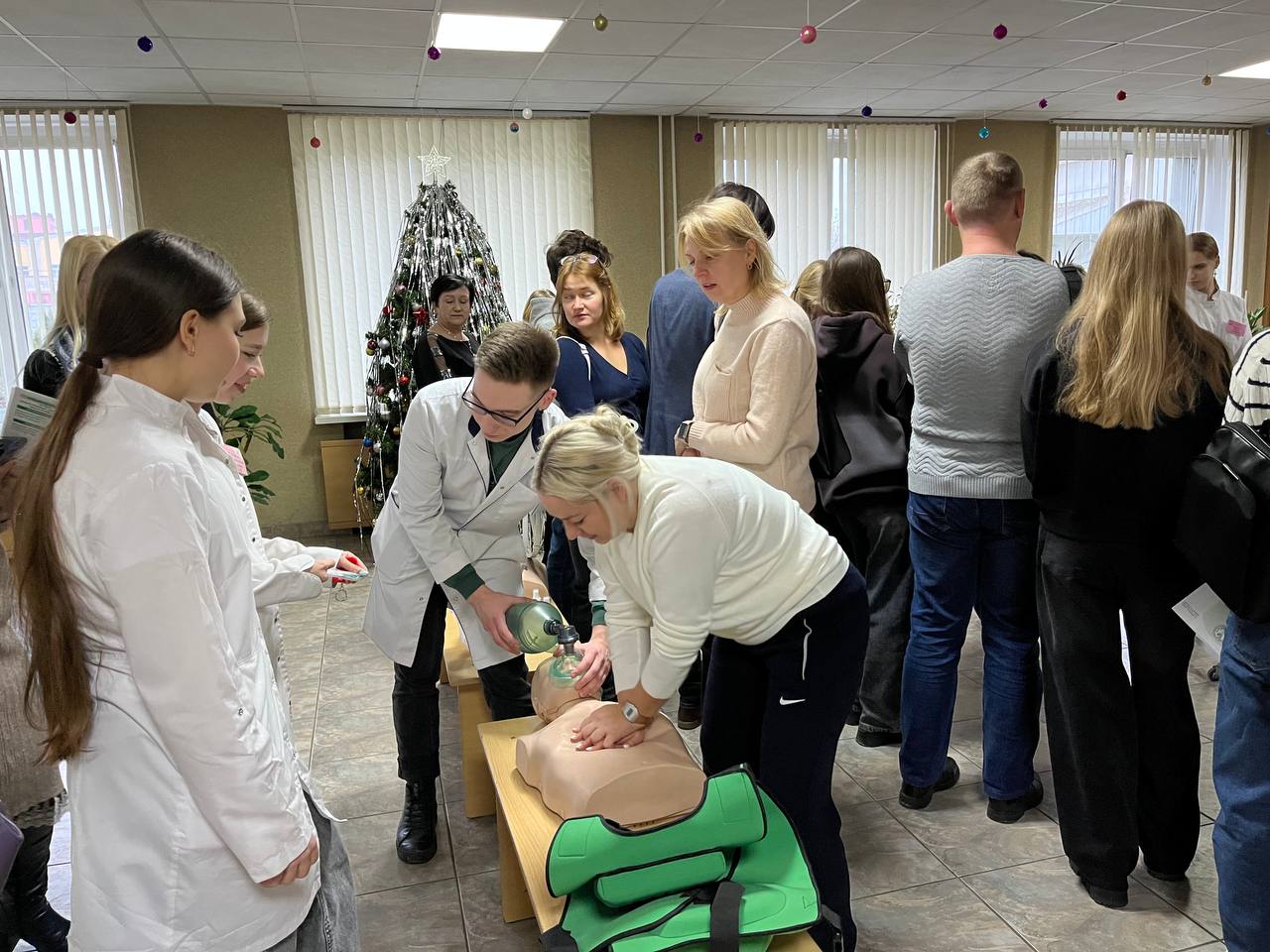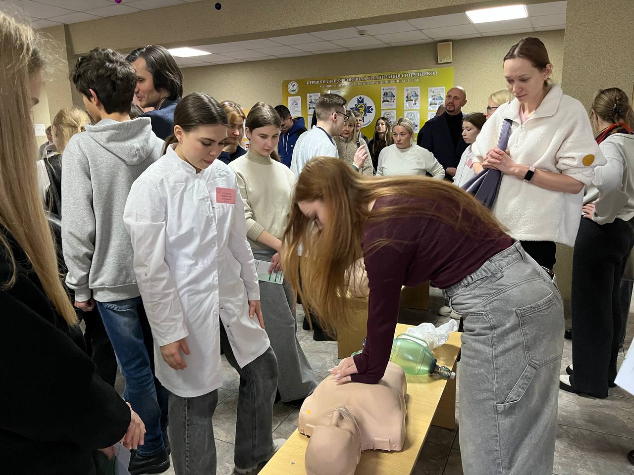 Лечебное дело: , отработали навыки аускультации легких и сердца, обучились на манекенах навыкам сердечно-лёгочной реанимации и приему Геймлиха.