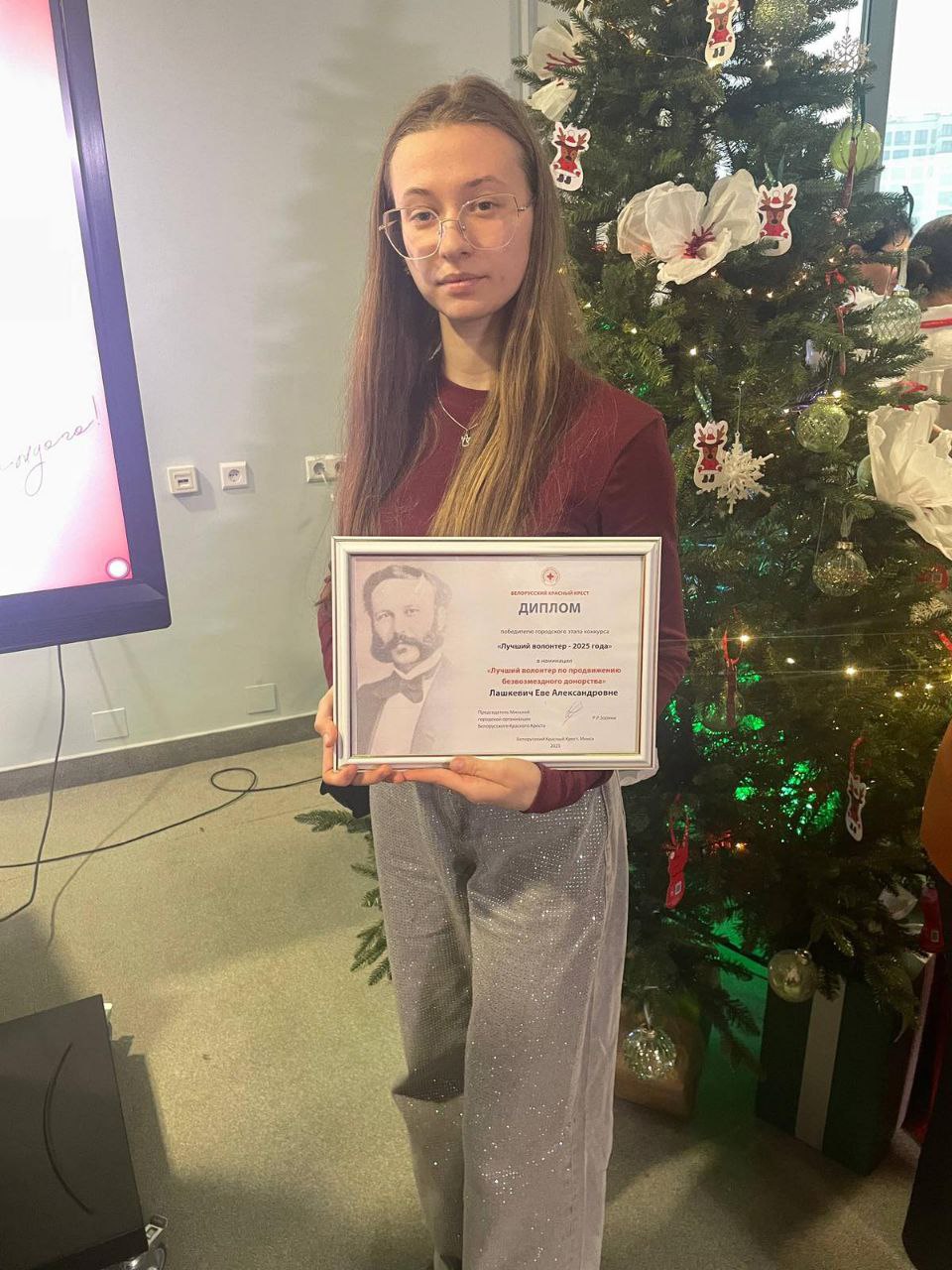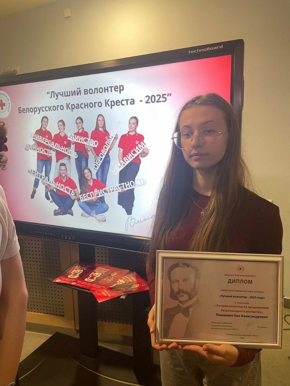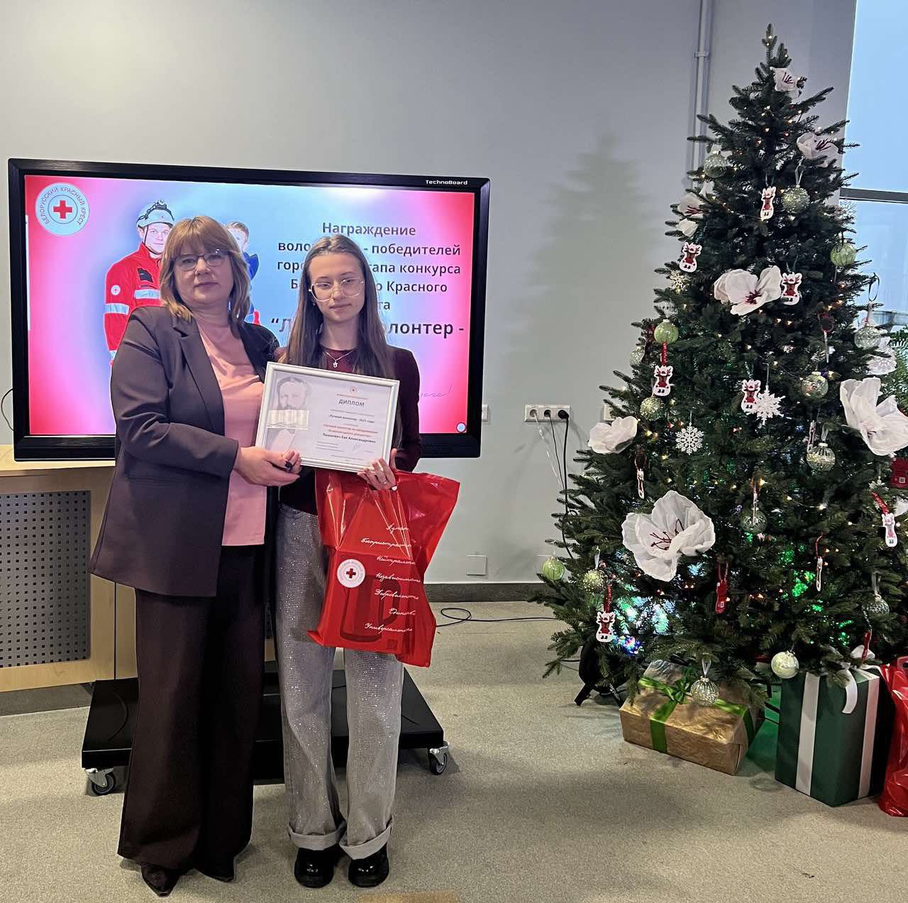04.12.2025 Лашкевич Ева и волонтерская группа «Клуб молодого донора» УО «Минского государственного медицинского колледжа были отмечены наградами Минской городской организации Белорусского Красного Креста.