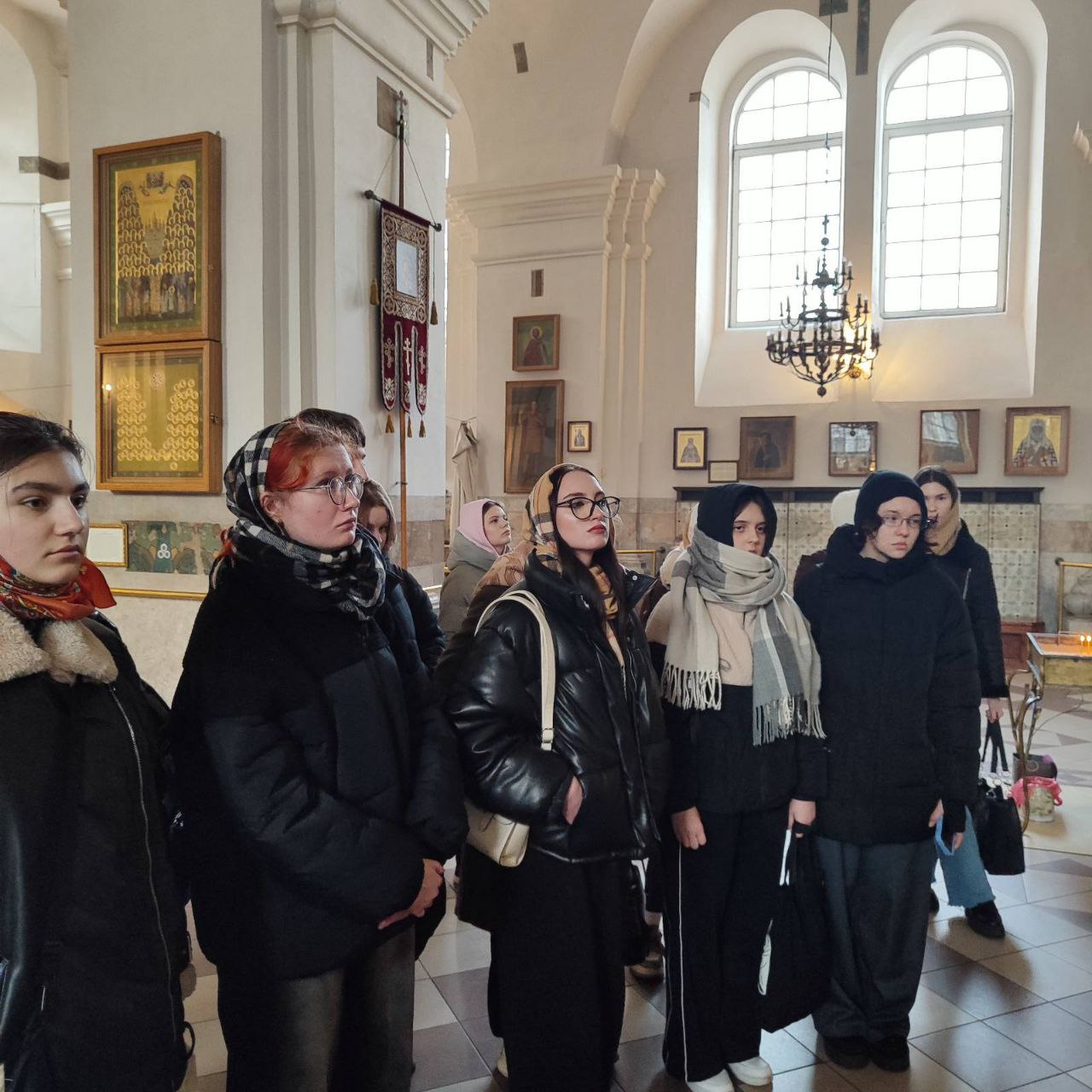 10 декабря 201 ЛД группа вместе с куратором Ковенской И.Л. посетила экскурсию в Свято- Петро-Павловском соборе г.Минска. Узнали историю храма — самого древнего сохранившегося памятника архитектуры в Минске. Познакомились с устройством храма, основными живописными фресками, иконами и историями, связанными с ними.