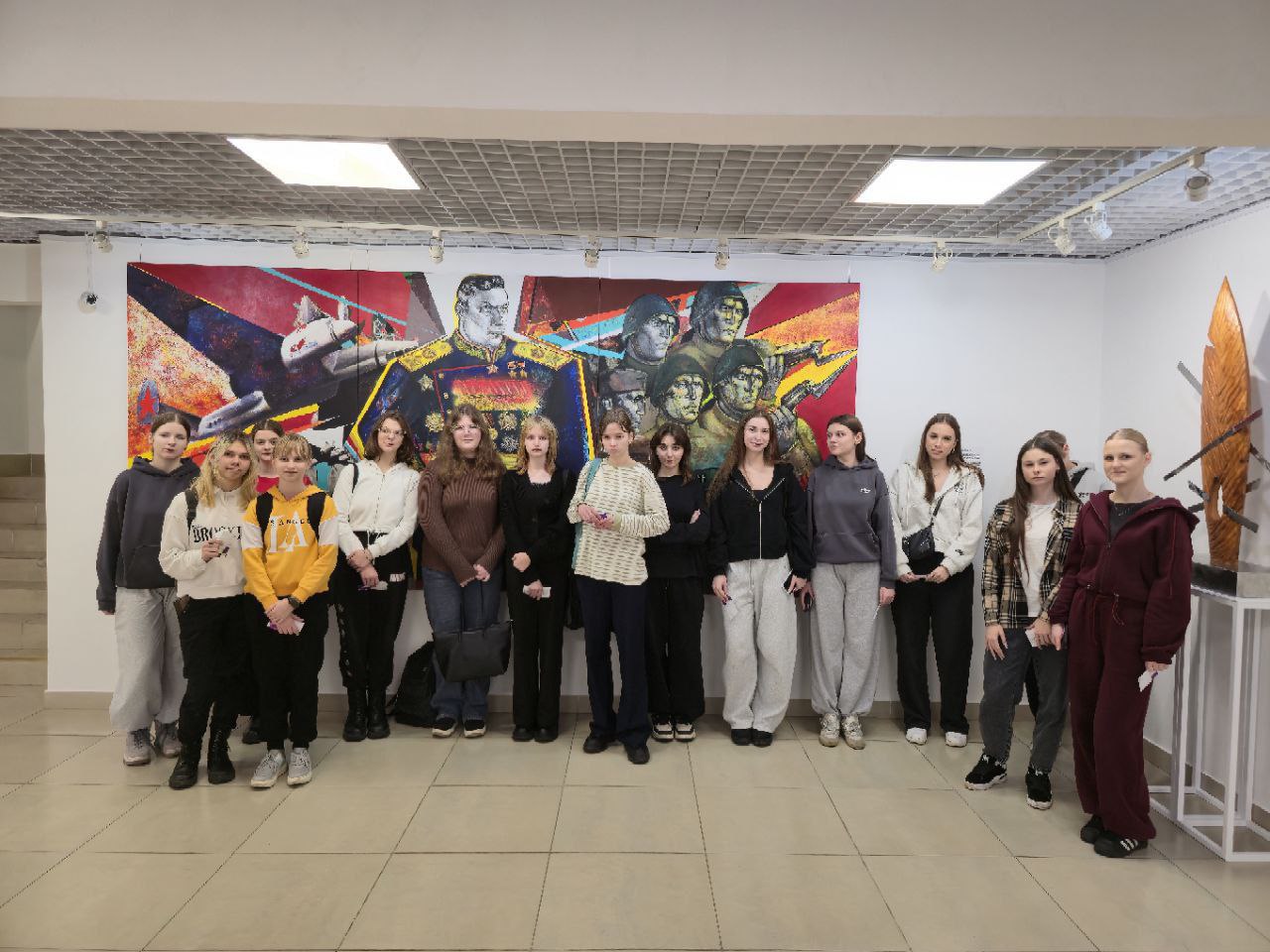 В ходе экскурсии вниманию учащихся были представлены презентации на темы "Скульптура", "Живопись", "Графика", "Декоративно-прикладное искусство", "Монументальное и монументально-декоративное искусство", "Художественная династия" и "За вклад в развитие изобразительного искусства".