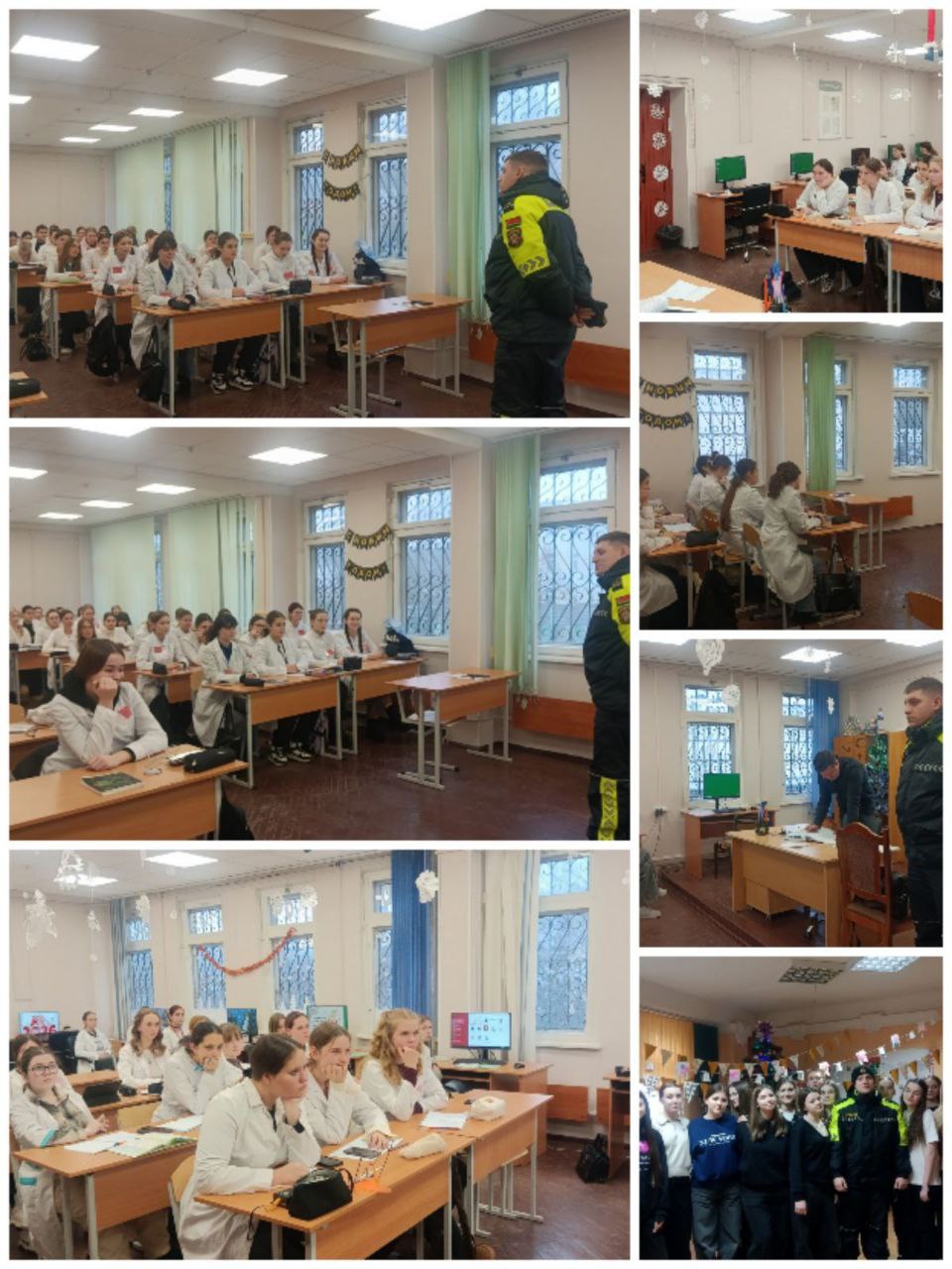 16.12.2025 с учащимися УО "Минский государственный медицинский колледж" прошла встреча со старшими лейтенантом, инспектором ДПС ГАИ МОБ Партизанского РУВД г. Минска Курченей Н.А. по теме "Останови беду!"