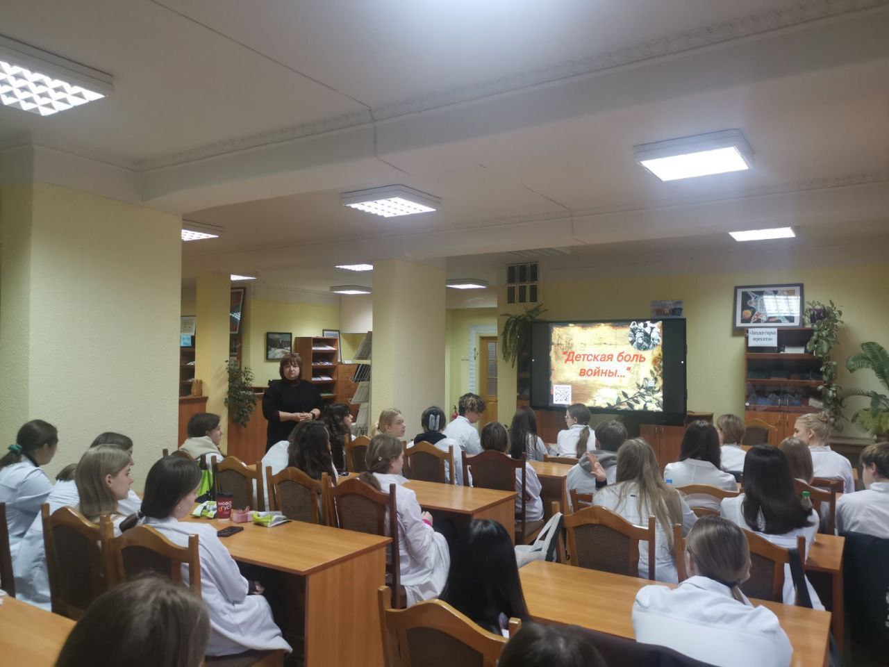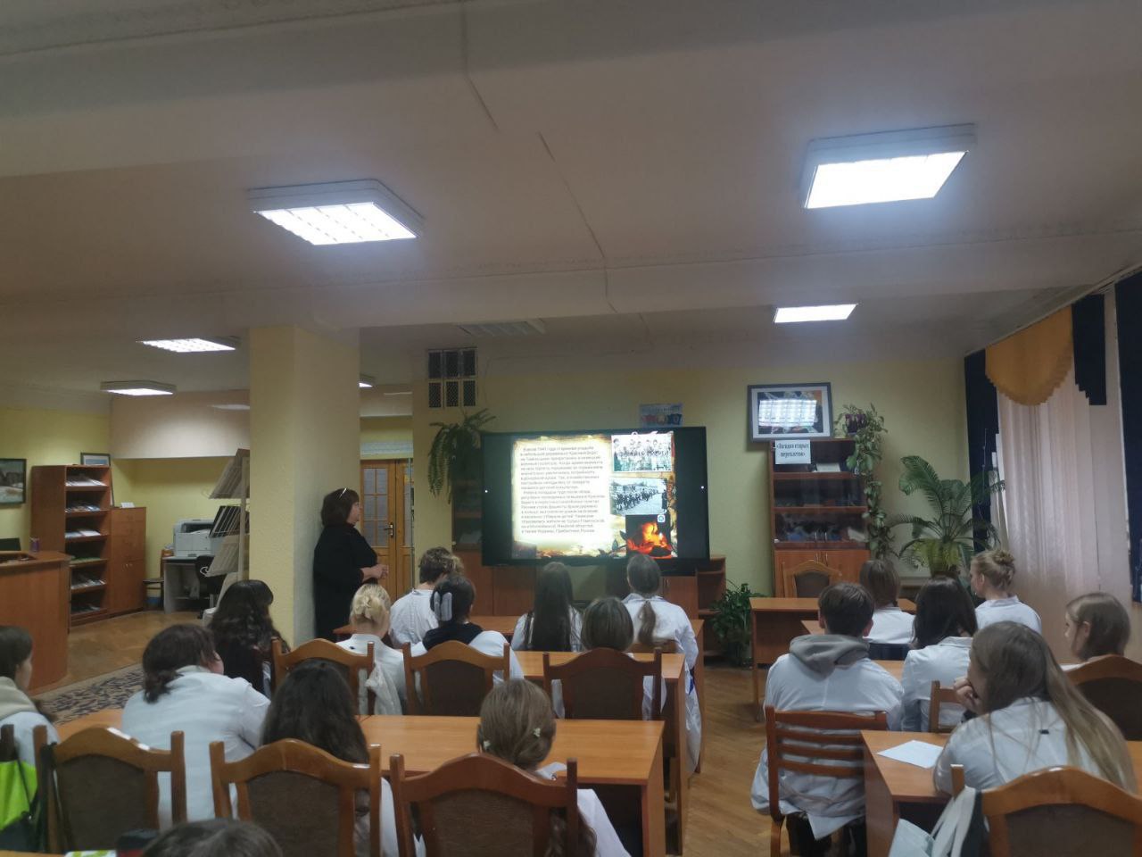18 декабря с учащимися УО «Минский государственный медицинский колледж» заведующей Минской городской библиотекой-филиалом № 1 имени Л. Н. Толстого, Иноземцевой Лолой Юрьевной проведено информационное занятие, посвященное тематике геноцида фашистами и их пособниками белорусских детей в годы Великой Отечественной Войны.