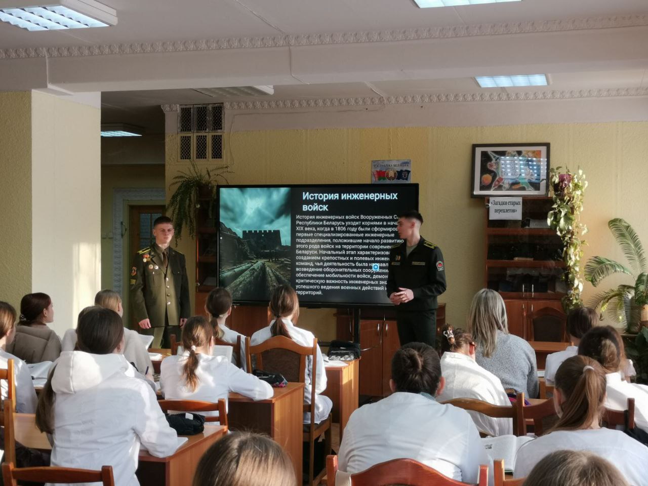 В рамках военно-патриотического воспитания для учащихся колледжа была организована экскурсия во 2-ю ордена Красной Звезды инженерную бригаду и противоминный центр Вооруженных Сил Республики Беларусь и проведен информационный час с участием курсантов военно-технического факультета в БНТУ по теме «21 января -День инженерных войск».