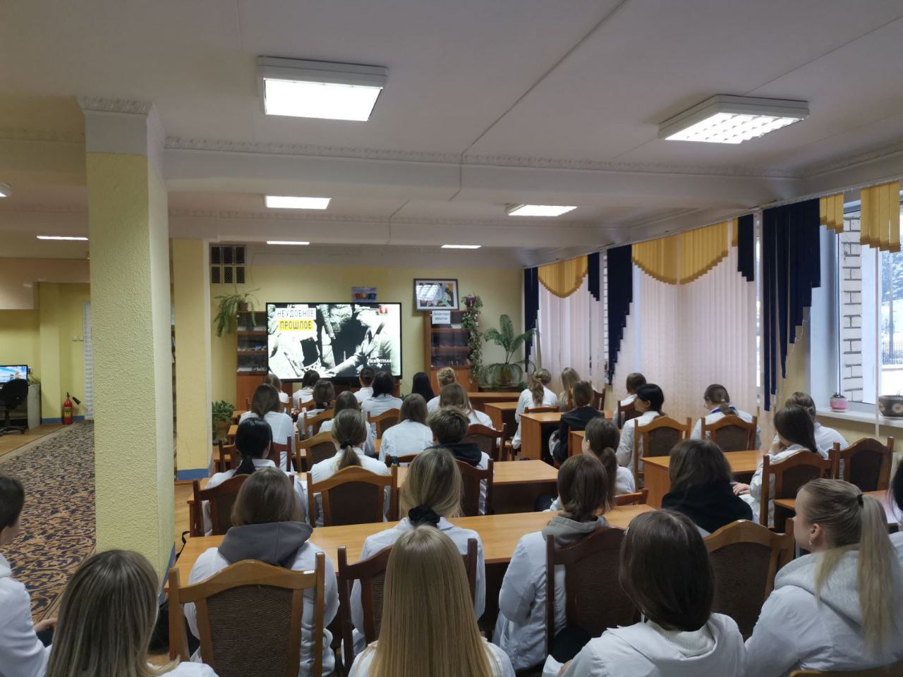 11 февраля в УО «Минский государственный медицинский колледж» прошел объединённый кураторский час по теме "Геноцид белорусского народа в годы Великой Отечественной войны". На кураторском часу учащимся были показаны видеофильмы «Вирус нацизма» и «Партизаны Беларуси».