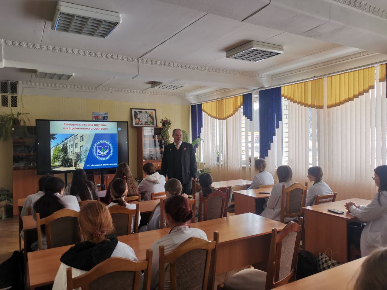18 февраля в колледже прошел информационный час с участием Гомолко С.Н., научного сотрудника УО «Академия образования» по теме: «Беларусь страна дружбы и национального согласия».