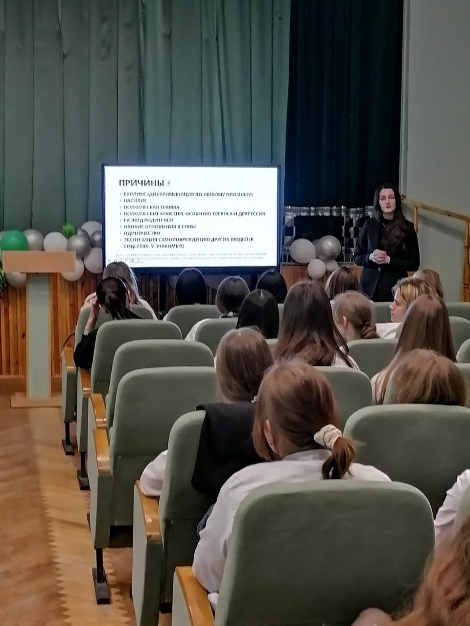 В рамках работы волонтерского отряда «Психическое здоровье» Белорусского государственного медицинского университета, студентка 6 курса лечебного факультета Гоз София Павловна 13 марта провела для учащихся колледжа интерактивную лекцию на тему «Суицид. Самоповреждение», рамках которой были подняты вопросы: