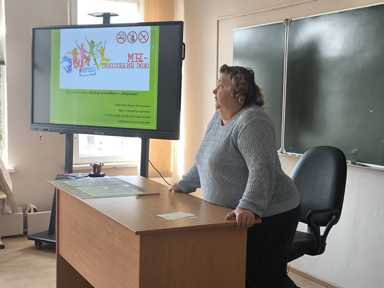 13 марта в УО «Минский государственный медицинский колледж» прошла встреча врача психиатра-нарколога УЗ «Минский городской клинический наркологический центр» Кофановой Ирины Евгеньевны с учащимися.