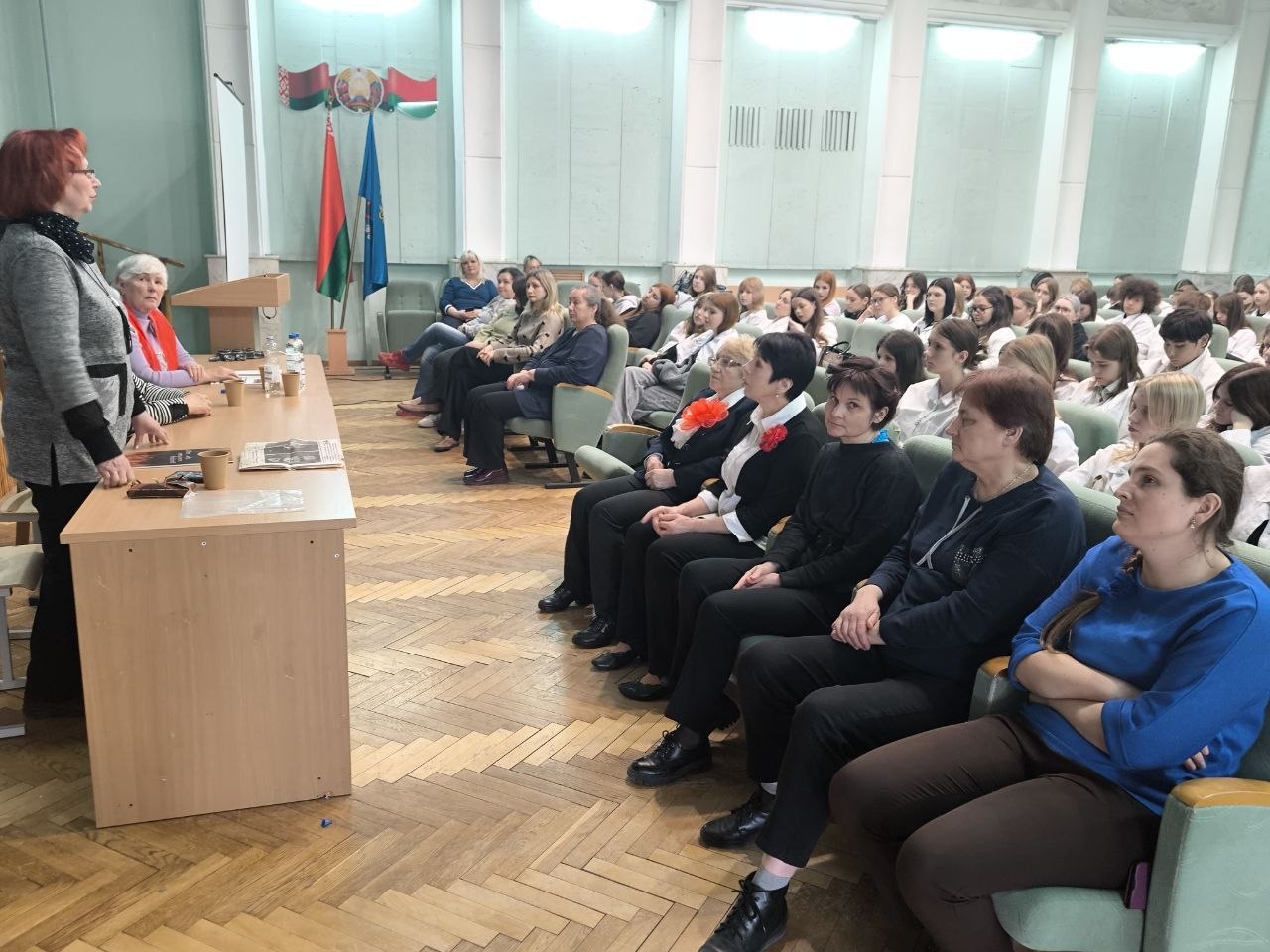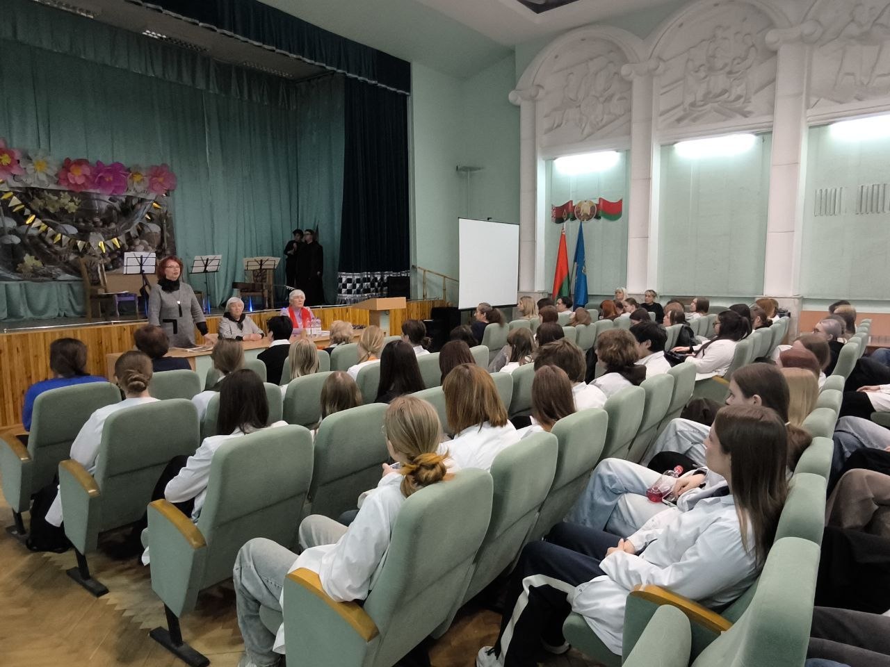 17 апреля в учреждении образования «Минский государственный медицинский колледж» прошло мероприятие на тему «Геноцид белорусского народа в годы ВОВ». Гостями мероприятия стали: Пожаева Альбина Ивановна, представитель ветеранов ВОВ Партизанского района г. Минска, Бровцына Алла Александровна, член совета ветеранов, Черновец Зинаида Владимировна, малолетний узник и ансамбль гитаристов ТЦСОН Партизансконо района г.Минска "С песней на струнах". Гости рассказали истории из своей жизни. За каждым воспоминанием стоит личная трагедия, история спасения на фоне страшного военного времени. В завершении мероприятия гости порадовали присутствующих музыкальными номерами.