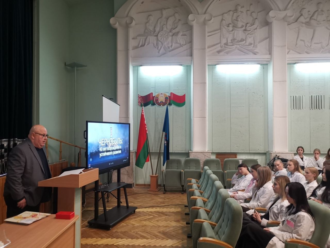 24 апреля учащиеся УО «Минский государственный медицинский колледж» провели акцию «Мы помним», посвященную 40 летию со дня аварии на Чернобыльской АЭС — крупнейшей техногенной катастрофы в истории человечества. Мероприятие прошло с участием представителя Белорусского республиканского общественного объединения ликвидаторов и инвалидов Чернобыльской катастрофы «Ветераны Чернобыля», Павлючука Владимира Владимировича.